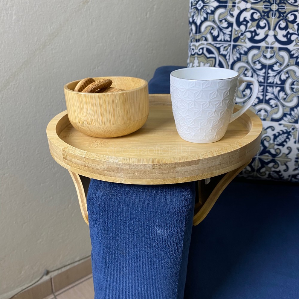 Prática e versátil, a bandeja redonda de bambu com apoio dobrável para sofá é perfeita para trazer mais conforto ao seu dia a dia. Ideal para apoiar copos, xícaras, pratos, petiscos, livros ou até o celular, ela facilita momentos de descanso sem a necessidade de uma mesa lateral.